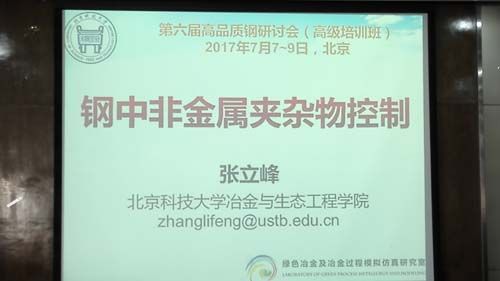 本次研討會由中國金屬學會煉鋼分會、金屬學會青年工作委員會和北京科技大學冶金與生態(tài)工程學院聯(lián)合舉辦;會議邀請北京科技大學王新華教授、張立峰教授、張家泉教授、郭漢杰教授、美國安賽樂米塔爾鋼鐵公司Hongbin Yin教授和韓國浦項科技大學Youn-Bar Kang教授分別針對鋼中非金屬夾雜物控制、連鑄坯內(nèi)部質量控制、高鋁鋼、潔凈鋼及ESP精煉生產(chǎn)工藝等熱點問題進行為期三天的授課。